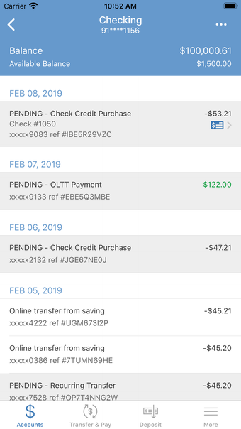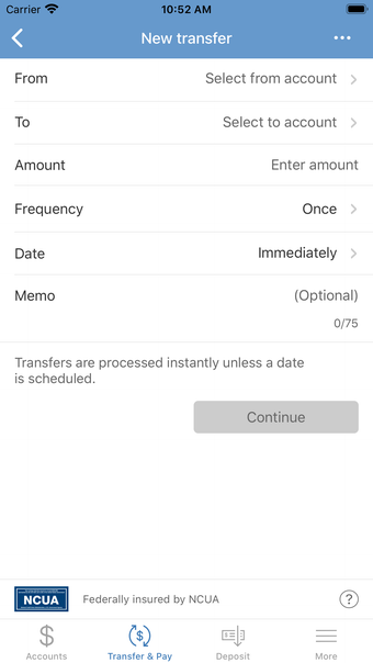 Ứng dụng cung cấp một loạt các tính năng cho người dùng, bao gồm kiểm tra số dư tài khoản và lịch sử giao dịch, chuyển tiền vào các tài khoản hiện có và thiết lập cảnh báo tài khoản qua tin nhắn văn bản và/hoặc email. Ứng dụng cũng cho phép người dùng thanh toán hóa đơn, miễn là chức năng thanh toán hóa đơn đã được bật và nhà cung cấp dịch vụ đã được thiết lập. Tuy nhiên, một số tùy chọn như hình ảnh séc, chuyển tiền giữa các tài khoản và truy cập thông tin thẻ tín dụng không khả dụng trên ứng dụng di động.